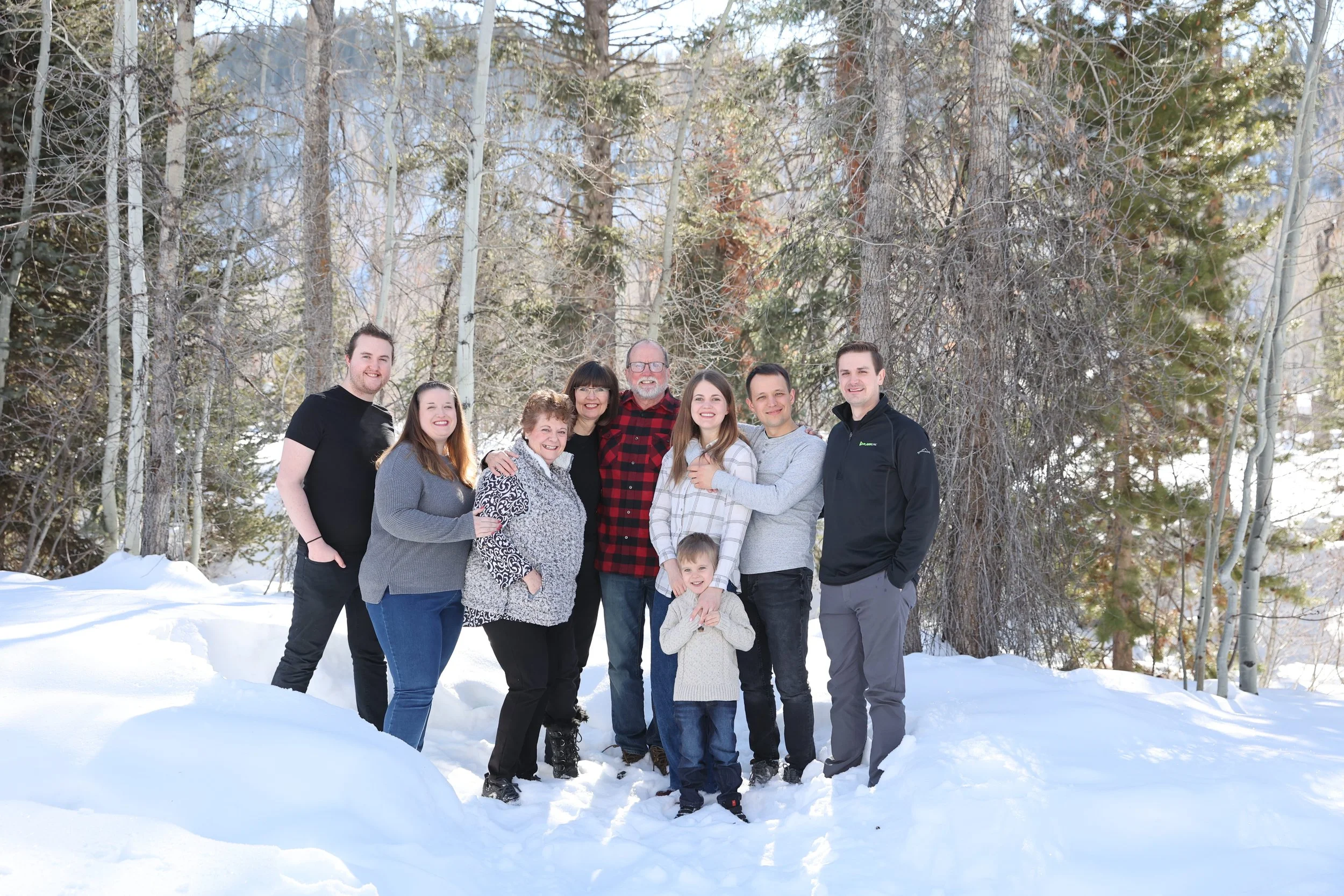 L-R: Justin & Allison Fleming; Allison’s mother, Karen Screen; myself and Andy; Britain and Max Yakovlev with Zak in front; Allison’s brother, Morgan Screen. Taken on our 35th wedding anniversary trip near Avon, Colorado, February 2022, just days before the war began between Russia and Ukraine — we made it back home to Kyiv just before they closed the skies to all but military air traffic.